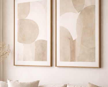 Neutral minimalist wall art is timeless. It helps create a living room that feels calm, cozy, and inviting — a space where you can truly relax.