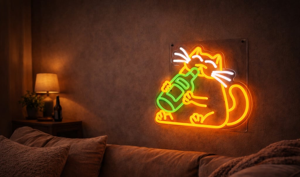 That’s exactly what happened when I added this funny beer cat neon sign to my wall.