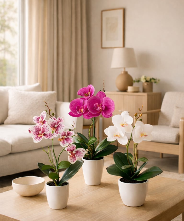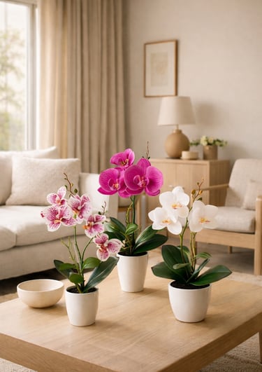 These elegant artificial flowers bring warmth, softness, and effortless beauty — without maintenance.
