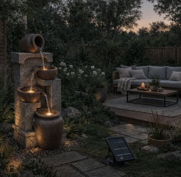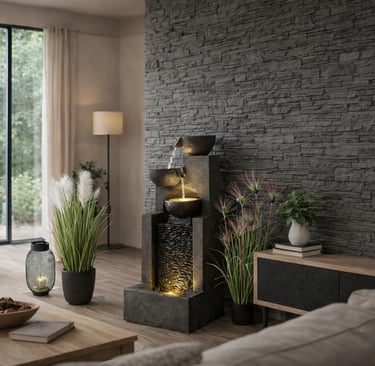 A soft, gentle sound of water flowing in the background. A warm light glowing quietly as the evening sets in. Nothing dramatic. Nothing overwhelming. Just a small detail that changes the whole mood of the space.